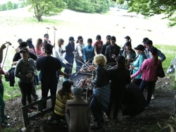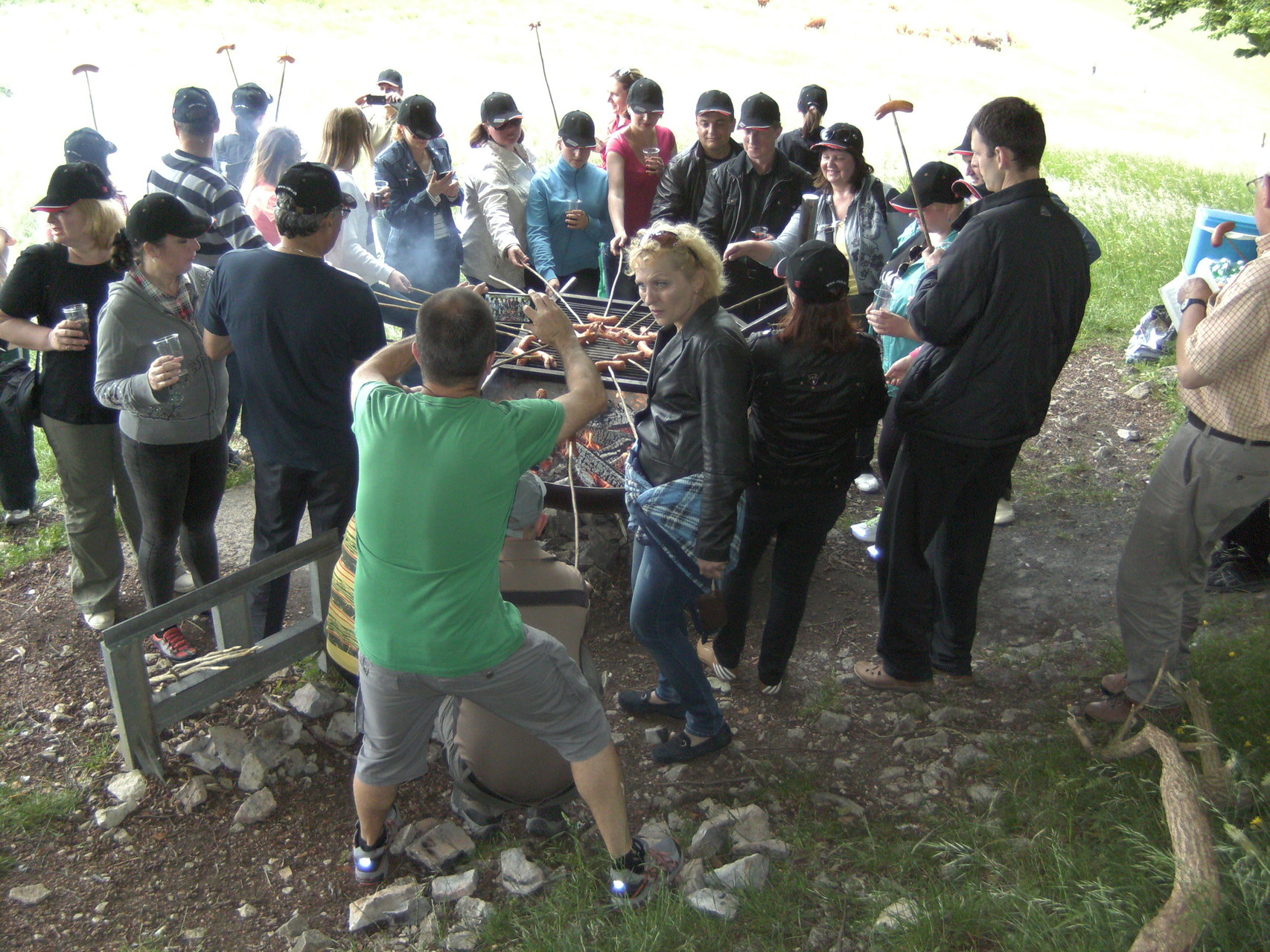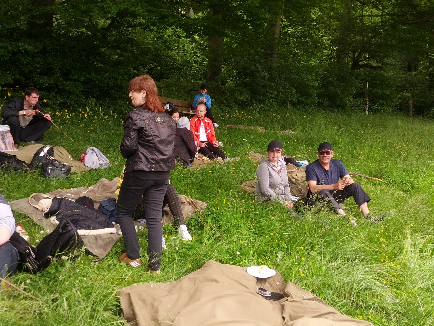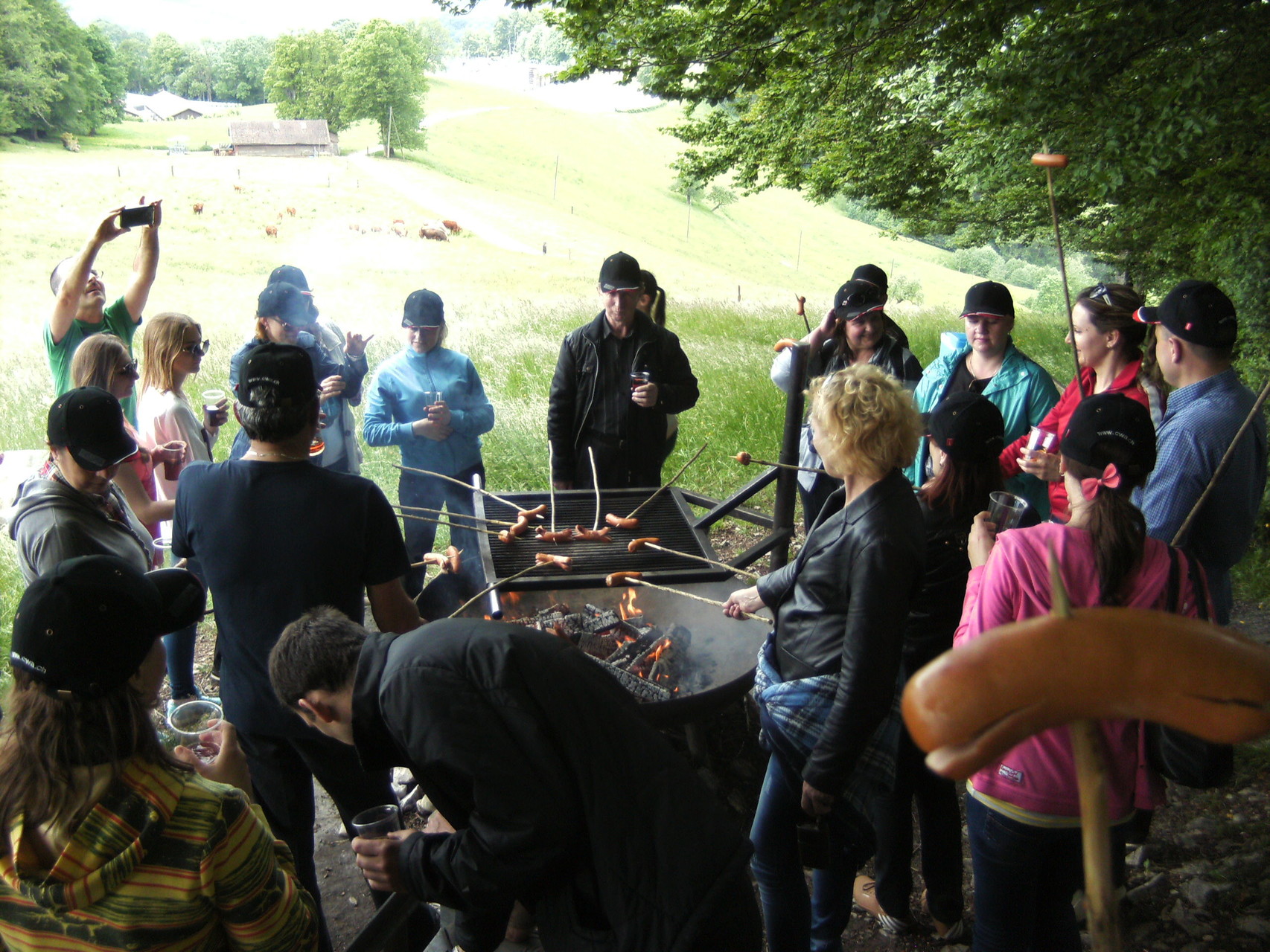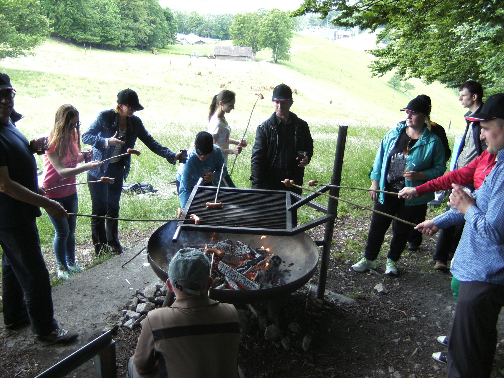 Nach dem ausgiebigen Frühstück ging es dann für die Gäste aus der Ukraine auf die Froburg um sich dort etwas von den Strapazen der Hinreise zu erholen und bei herrlichem Wetter die Aussicht zu geniessen. Das Grillieren will ebenfalls gelernt sein und so wurden zum Mittagessen Würste über dem offenen Feuer grilliert.