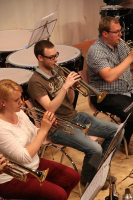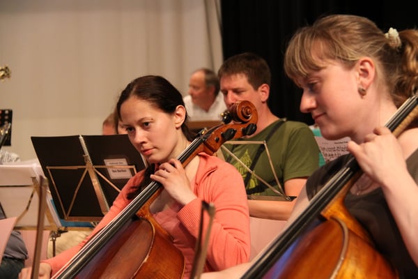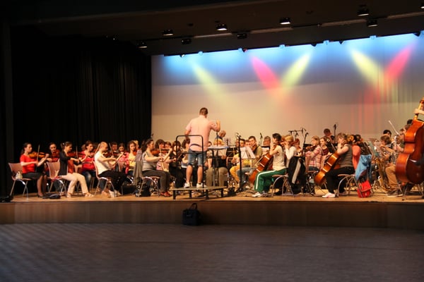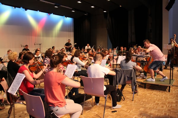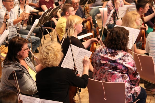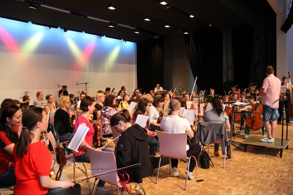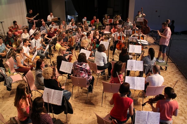 Endlich ist es soweit. Die 1. Probe mit dem vollständigen Orchester. Das Puzzle aus verschiedenen Einzelteilen wird nun zusammengesetzt. Jeder ist aufgeregt, wie es wohl tönen wird.