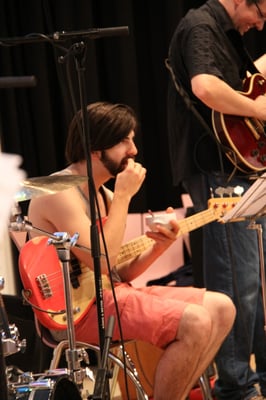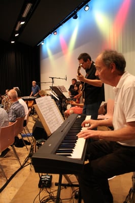 So nutzen wir die Probe um uns an das Zusammenspiel mit der Band bestehend aus E-Gitarre, E-Bass, Piano und Drumset zu gewöhnen.