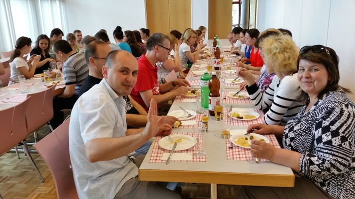 After a rich breakfast in Trimbach the group of our Ukrainian guests went up the mountain of Froburg to relax and enjoy the beautiful view over the landscape around Olten. With Cervalats (typical Swiss sausage prepared over the open our guest could calm down their hungry stomaches to be ready for todays repetition. Back in Olten, they could not relax in the time till the repetitions but they had a special repetition to be 100%. That's motivation!