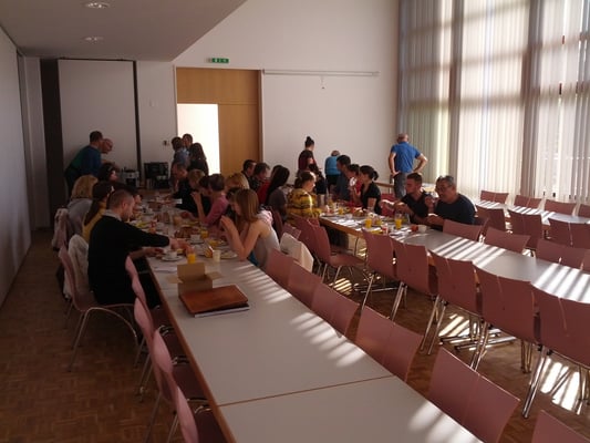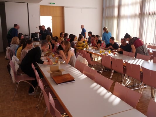 Nach dem unsere Gäste viel Zeit am polnischen Zoll verloren haben und danach wegen den Ruhezeitenbestimmungen für den Busfahrer noch eine weitere Pause eingelegt werden musste, sind nun alle erschöpft aber wohl behalten in der Schweiz angekommen. In Trimbach wurde den Gästen kurzerhand durch Peter Tschan und seine Crew ein Frühstück organisiert und sie erhielten die Gelegenheit sich frisch zu machen.